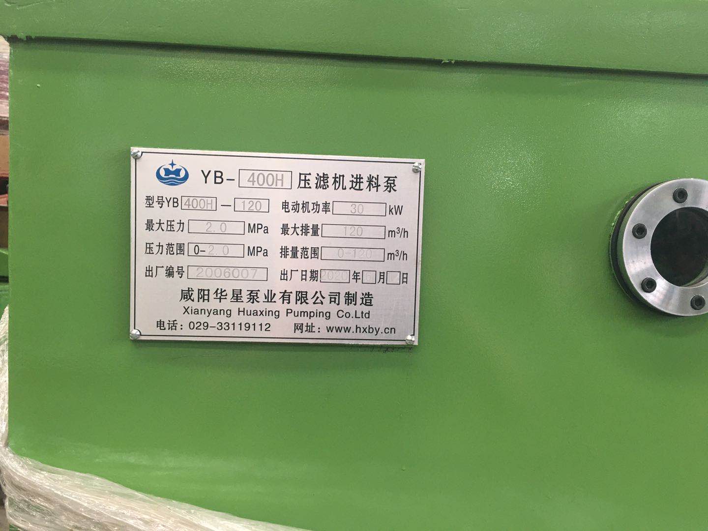 YBH400-120壓濾機專用節(jié)能泵參數(shù)流量流量:0-120立方/h 可調,額定壓力為2MPa,配用電機功率分別為30KW,尺寸為:2米48*2米5*2米6。